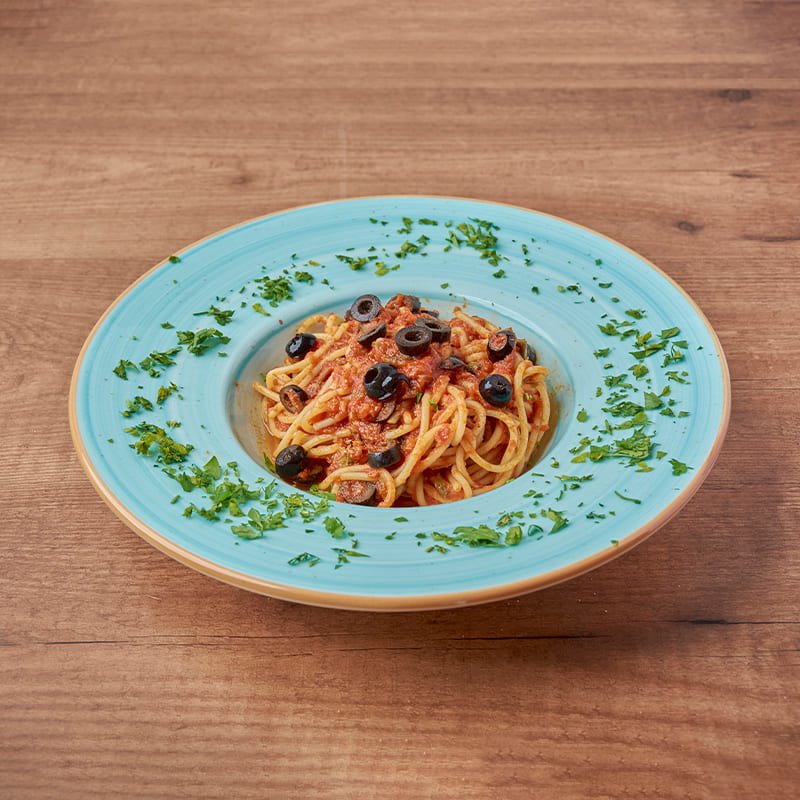 Tomate, anchoa, aceitunas negras, alcaparras, ajo.
